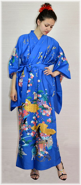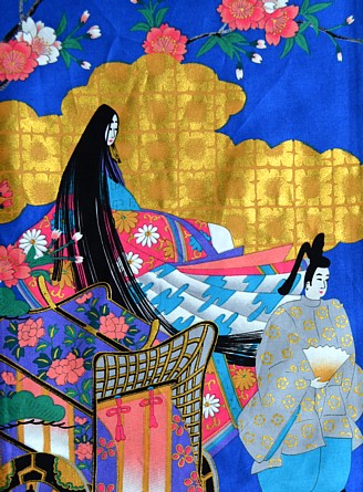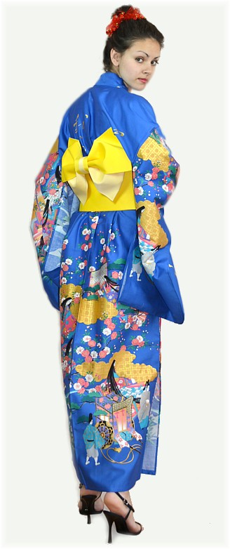Сюжет рисунка ткани этого кимоно - сцены из дворцовой жизни