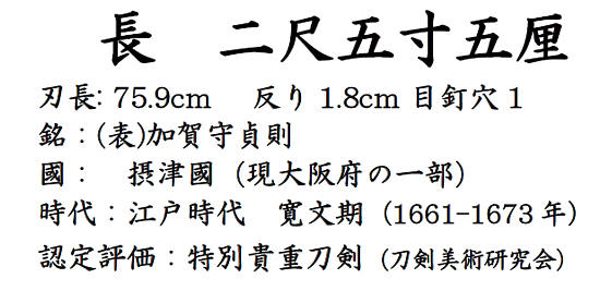 - Омотэ-мей 表銘: Kaga-no-kami Sukesada 加賀守貞則